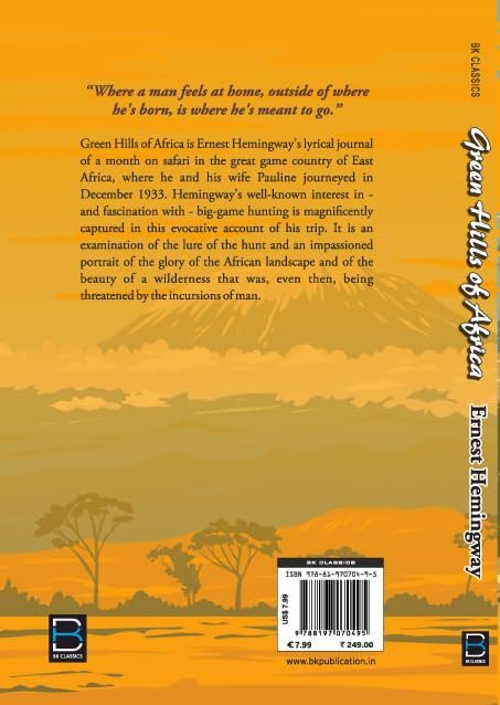 Green Hills of Africa is Ernest Hemingway’s lyrical journal of a month on safari in the great game country of East Africa, where he and his wife Pauline journeyed in December 1933. Hemingway’s well-known interest in – and fascination with – big-game hunting is magnificently captured in this evocative account of his trip. It is an examination of the lure of the hunt and an impassioned portrait of the glory of the African landscape and of the beauty of a wilderness that was, even then, being threatened by the incursions of man.